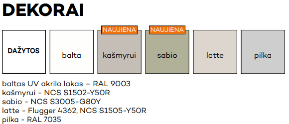 • Galimi varčios pločiai „60“, „70“, „80“ ir už papildomą mokestį „90“, „100“ bei dvivėrės.