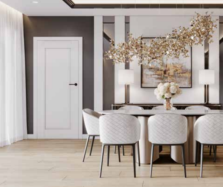 • Reversinės durys durys, magnetine spyna. Paslėpti „Estetic 1821“ vyriai (vyriai yra durų staktos įrangos dalis)