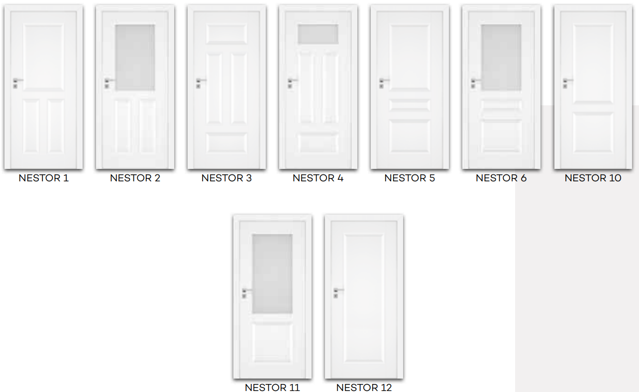 • Durys be užlaidos, magnetine spyna, paslėpti „Estetic 80“ vyriai (vyriai yra durų staktos įrangos dalis)