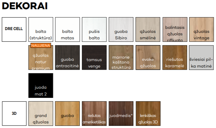 - Galimi varčios pločiai „60“, „70“, „80“ ir už papildomą mokestį „90“, „100“ bei dvivėrės.