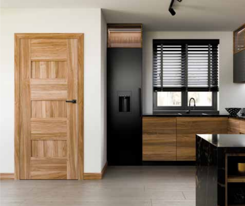 - Durys be užlaidos, magnetine spyna, paslėpti „Estetic 80“ vyriai (vyriai yra durų staktos įrangos dalis)