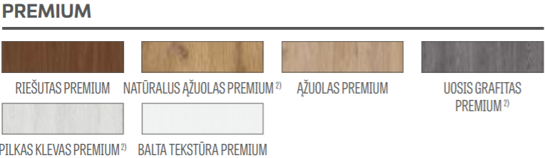 - Galimi varčios pločiai „60“, „70“, „80“, „90“ ir už papildomą mokestį „100“ bei dvivėrės.